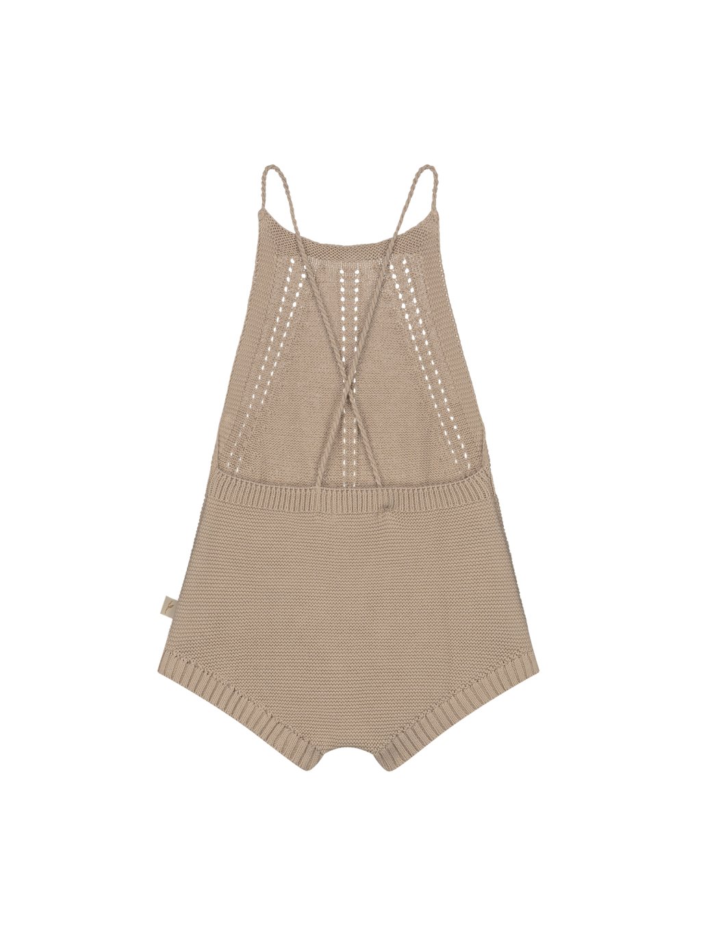 Jemný pletený vzor (ajour) dodává outfitu sofistikovaný vzhled, který se hodí na různé příležitosti – od každodenního nošení až po zahradní oslavy. Nastavitelná ramínka překřížená na zádech zajišťují perfektní padnutí a zároveň dodávají overalu stylový detail.